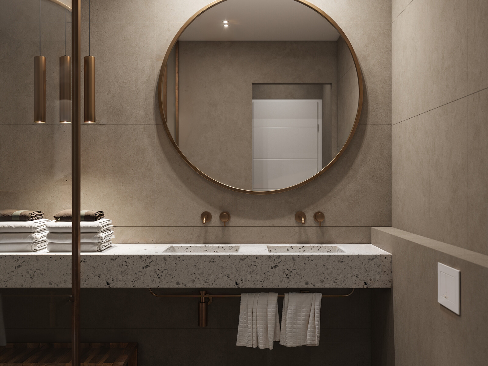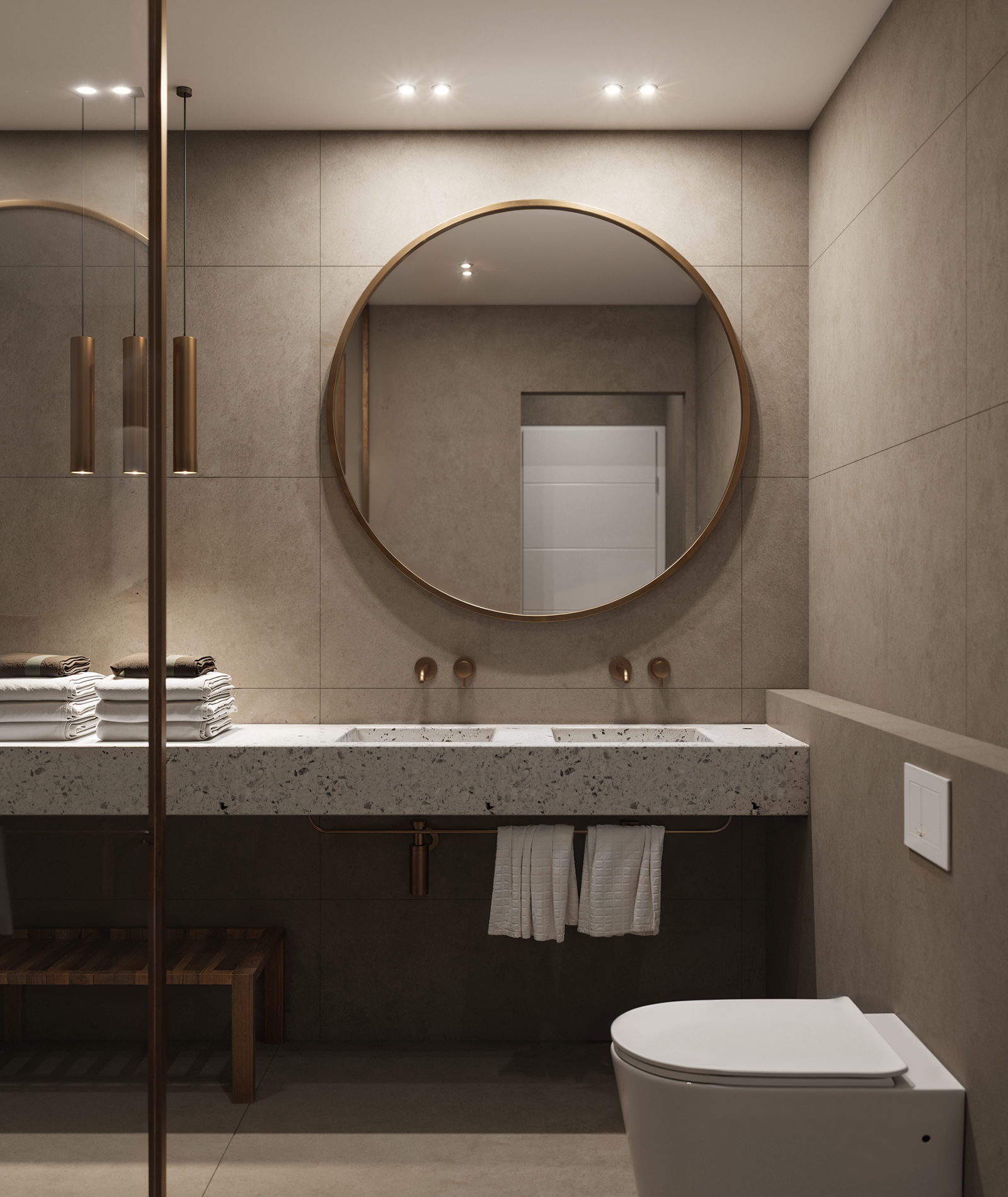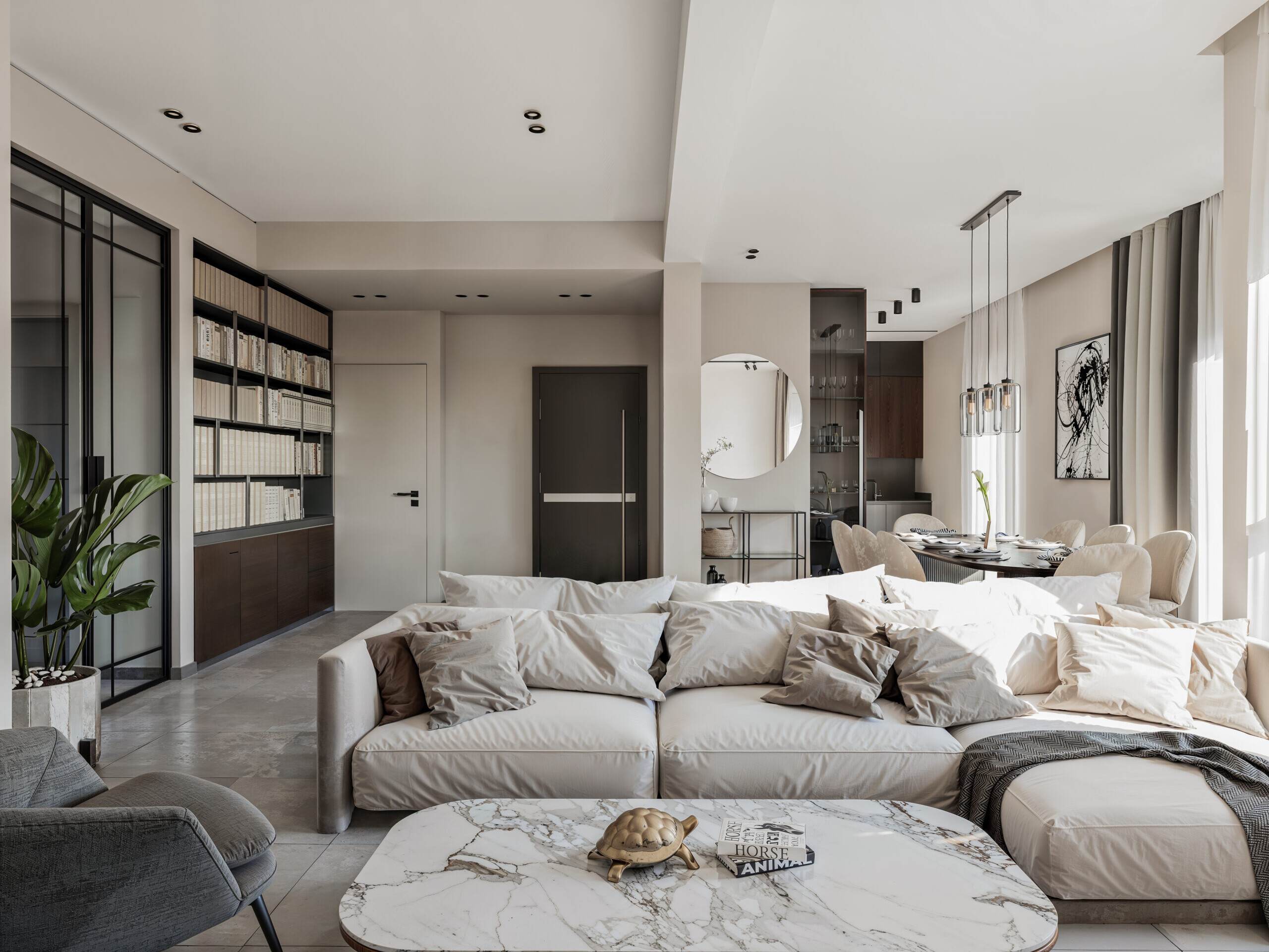 This elegant two-bedroom apartment in Aigaleo combines modern design with timeless comfort. The open-plan living area seamlessly connects the kitchen and lounge, enhanced by a sleek fireplace that anchors the space. Neutral tones, refined materials, and soft lighting create a calm yet sophisticated atmosphere. The residence includes a main bathroom and a separate WC, both designed with minimalist detailing and high-quality finishes. A perfect example of contemporary urban living with a warm, inviting character.